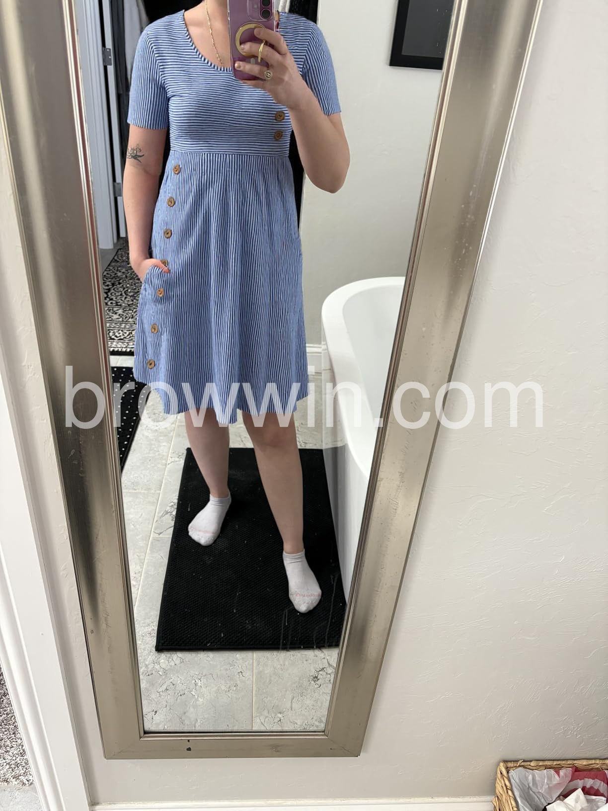 Yes!If you want a refund please contact our customer service at this email([email protected]).Elevate your everyday style with this charming Blue and White Striped Midi Dress. Crafted from a lightweight and breathable fabric, this dress offers both comfort and a effortlessly chic look.