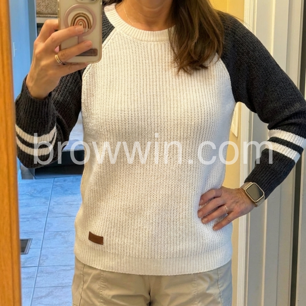 Yes!If you want a refund please contact our customer service at this email([email protected]).This Comfy Grey Knit Sweater features a crisp white body complemented by stylish striped cuffs, blending classic design with subtle accents. Crafted from soft knit fabric, it offers warmth and comfort for everyday wear. The contrasting cuffs add a refined touch that elevates your casual look with ease. Ideal for layering or wearing solo, this sweater combines practicality with understated style.
