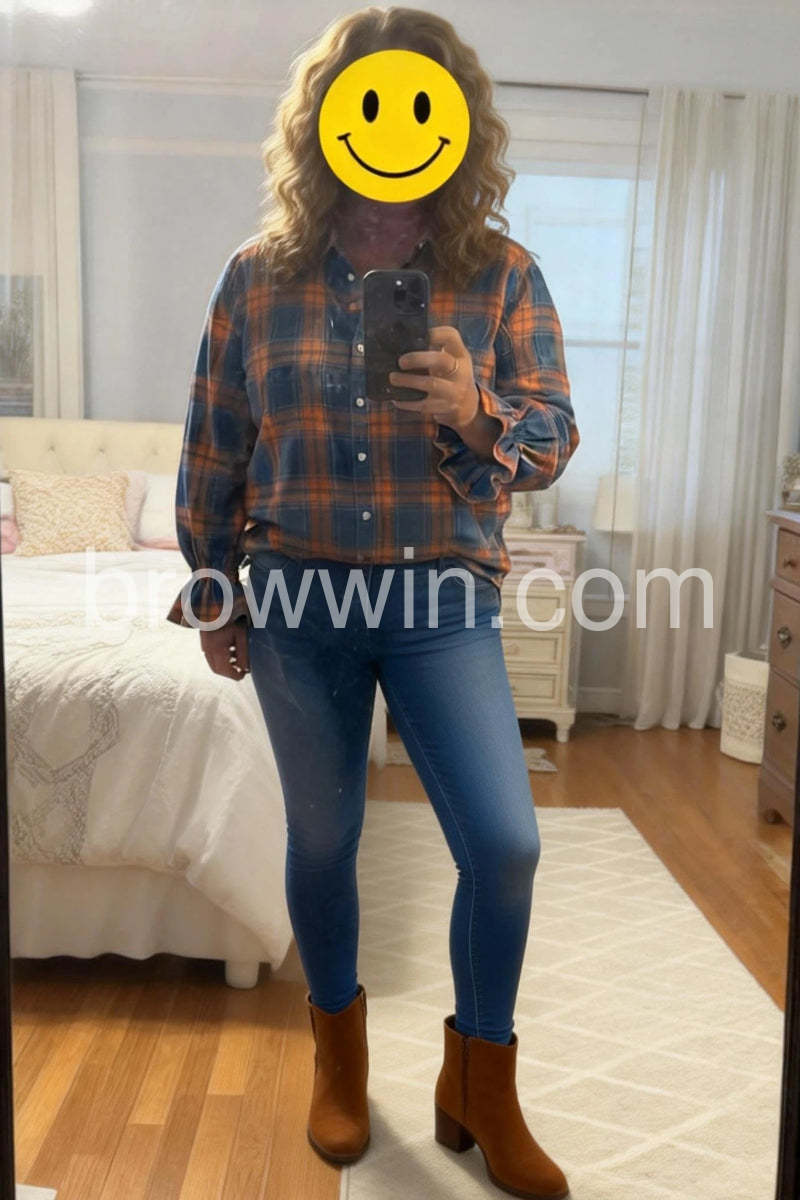 Yes!If you want a refund please contact our customer service at this email([email protected]).This blue check button-down shirt features elegant ruffle cuff sleeves, blending classic style with a modern twist. Crafted for a refined look, it offers a tailored fit that enhances your silhouette while providing comfort throughout the day. Ideal for professional settings or casual wear, this shirt adds a subtle yet distinctive detail that elevates any outfit.