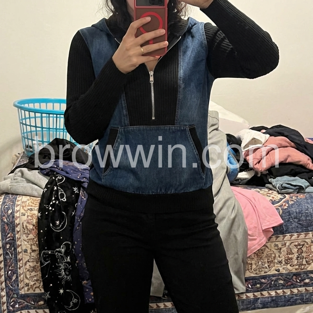 Yes!If you want a refund please contact our customer service at this email([email protected]).Stay comfortable and stylish with this versatile half-zip denim sweatshirt. The classic kangaroo pocket provides practical storage while the half-zip design offers easy layering and temperature control. Crafted from durable denim fabric, this piece transitions seamlessly from casual weekends to relaxed workdays. The structured fit and timeless silhouette make it a reliable wardrobe staple that pairs effortlessly with jeans, chinos, or joggers for