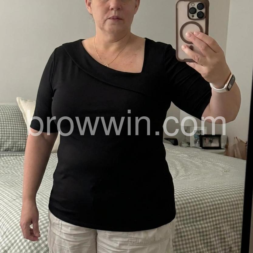 Yes!If you want a refund please contact our customer service at this email([email protected]).This Black Plain Short Sleeve Top is a versatile and stylish addition to your wardrobe. Made with high-quality fabric, it is comfortable and durable for everyday wear. The simple design makes it easy to dress up or down, perfect for any occasion. Upgrade your style with this must-have top.