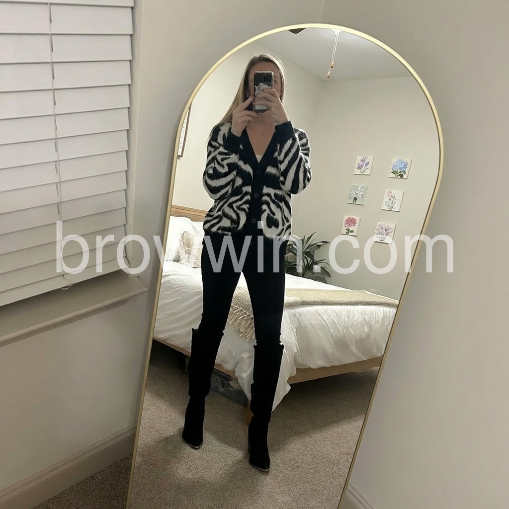 Yes!If you want a refund please contact our customer service at this email([email protected]).Elevate your wardrobe with this bold zebra-print knit cardigan crafted from a luxurious soft mohair blend. Its distinctive pattern adds a striking visual contrast, while the mohair fibers ensure lightweight warmth and a plush texture. Designed for both style and comfort, this cardigan is ideal for layering during transitional seasons, providing a sophisticated yet edgy statement piece to your collection.