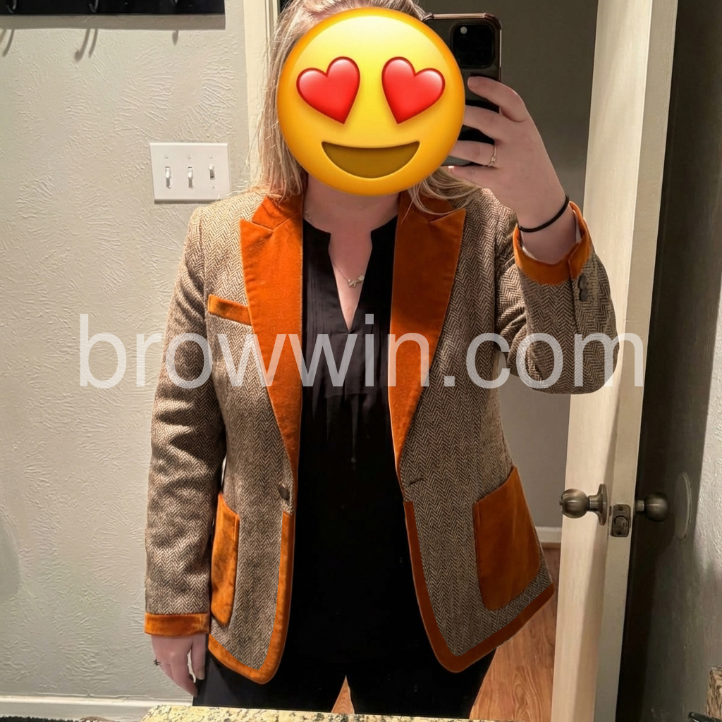 Yes!If you want a refund please contact our customer service at this email([email protected]).Elevate your wardrobe with this sophisticated brown herringbone velvet blazer, a timeless piece that seamlessly bridges vintage charm and contemporary style. The luxurious velvet fabric showcases a classic herringbone weave, delivering both visual depth and tactile elegance. Featuring a refined single-button closure, this blazer offers a streamlined silhouette that flatters various body types while maintaining impeccable structure. The rich brown tone pairs effortlessly with neutrals or bold accents, making it an indispensable layering piece for professional settings, evening occasions, or elevated casual wear. Perfect for those who appreciate quality craftsmanship and enduring design.