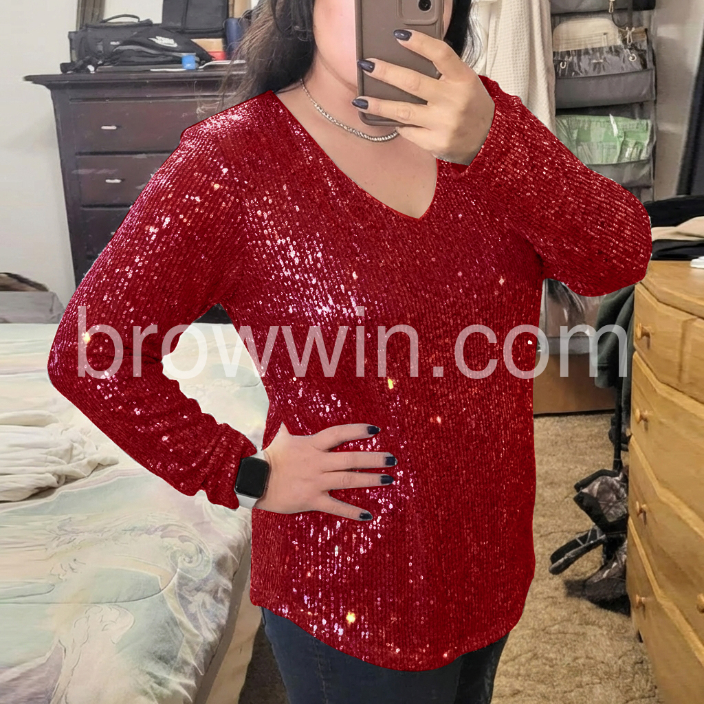Yes!If you want a refund please contact our customer service at this email([email protected]).Don't miss out on this beautiful v-neck top! The intricate sequin detailing is sure to make a statement and the v-neck cut gives it a modern feel. This top is perfect for any special occasion or night out.