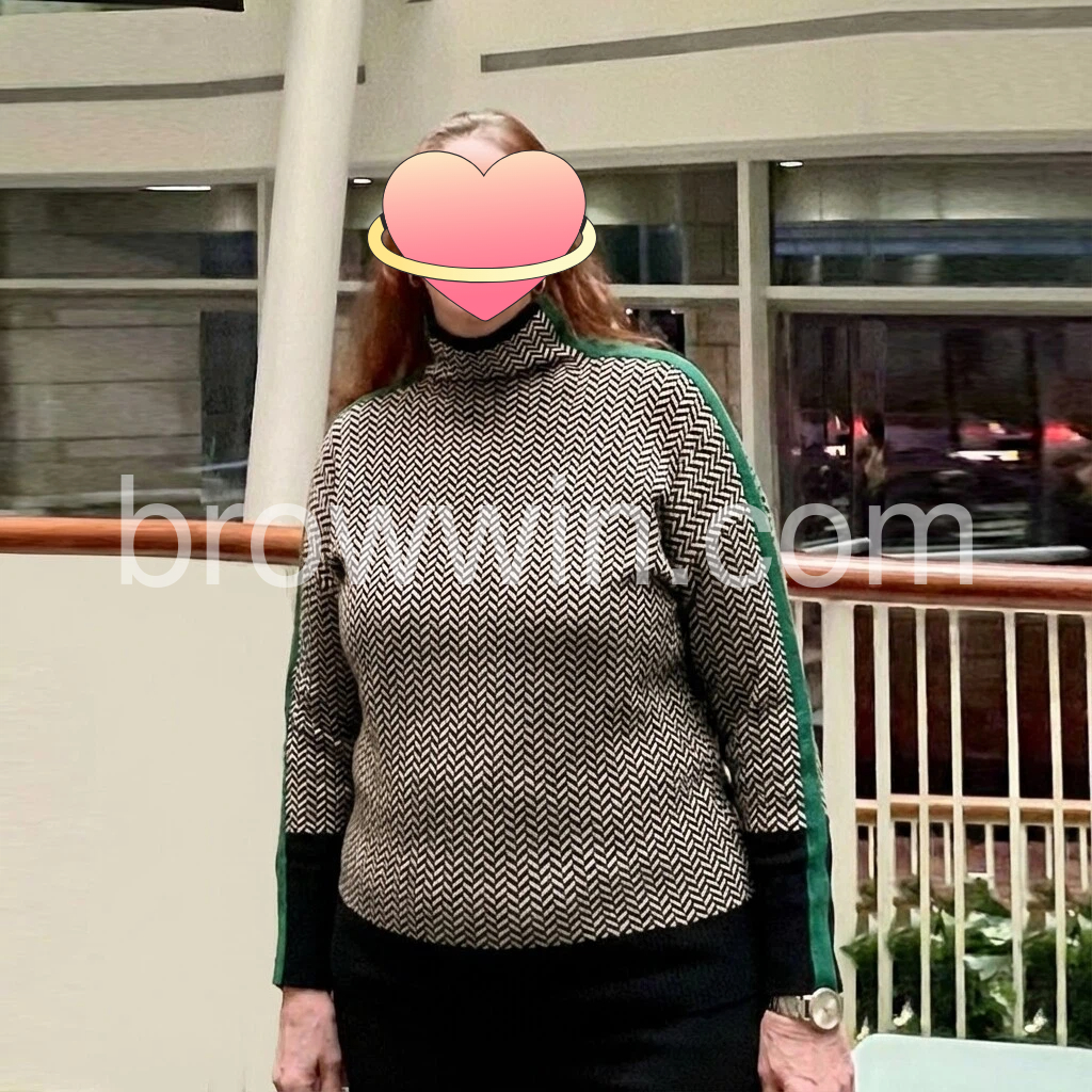 Black and White Chevron Print Green Stripe Turtleneck Sweater