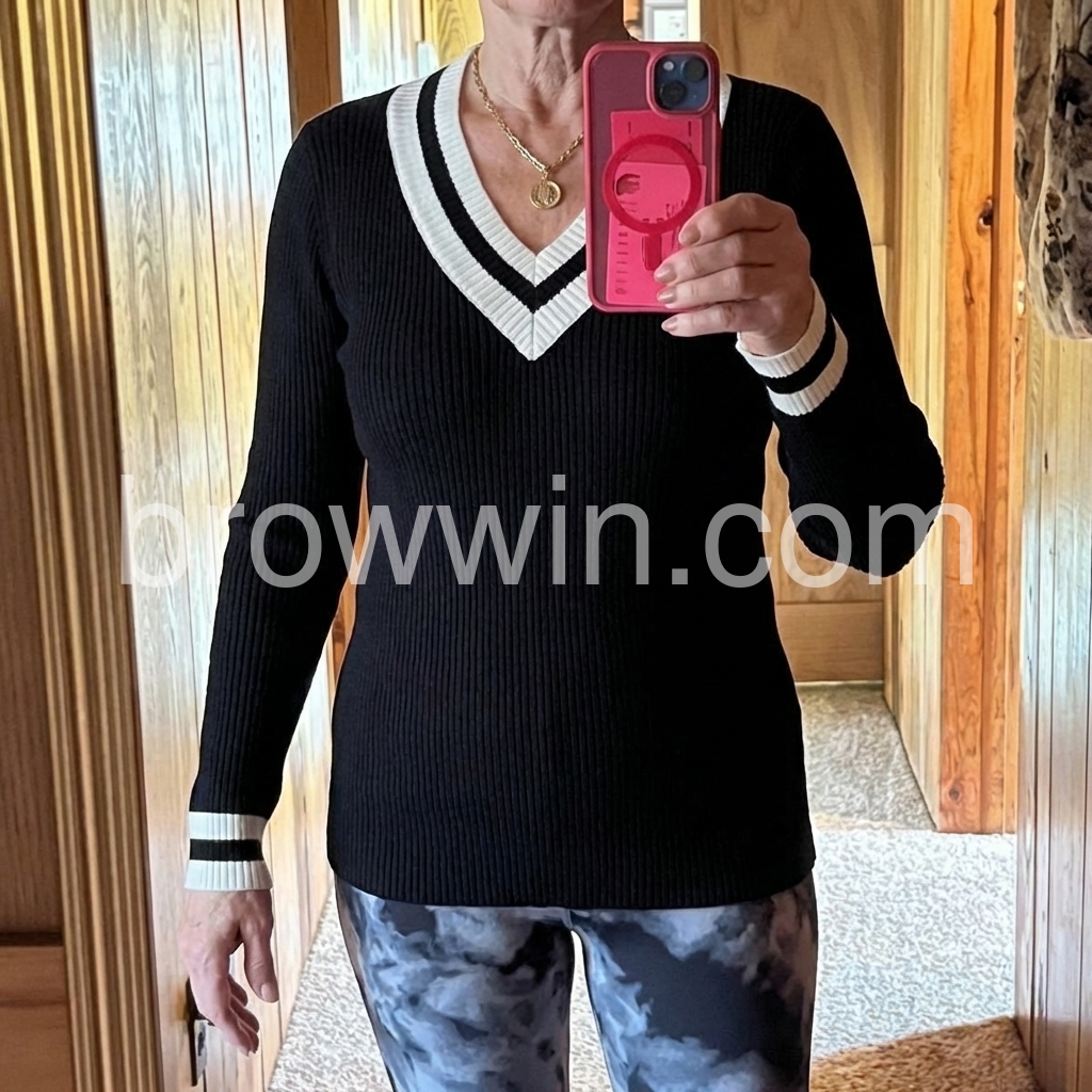 Yes!If you want a refund please contact our customer service at this email([email protected]).Elevate your style with our Black And White Color Block Sweater. This trendy and versatile sweater features a bold color block design, adding a touch of modernity to any outfit. Made with high-quality materials, this sweater is both comfortable and durable, making it a must-have for any fashion-forward individual.