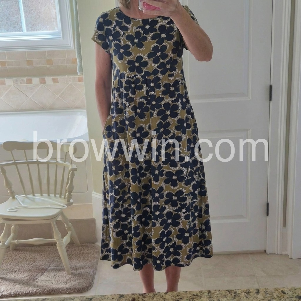Modern Floral Print Short Sleeve Midi Dress