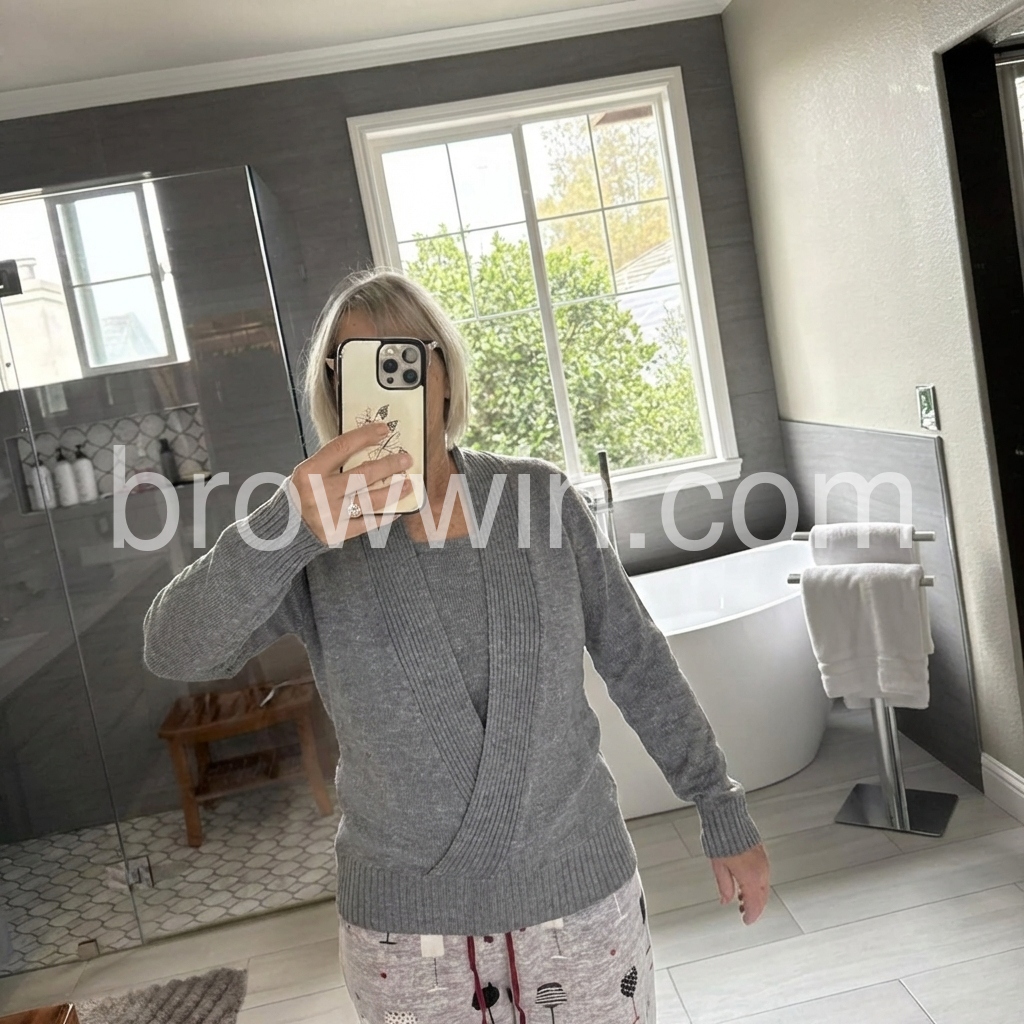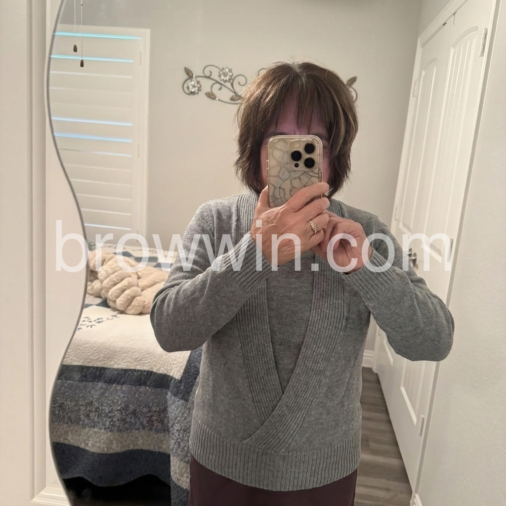 This dark gray sweater features a twofer style, perfect for those who love a mod layered look. Professional, casual, and yet still dressy, this versatile plunging v-neck sweater top and faux cami underneath provide the right amount of detail with long capped sleeves. Machine wash normal with light colors or hand wash. May be hung up to dry or lay flat. Light ironing if needed.