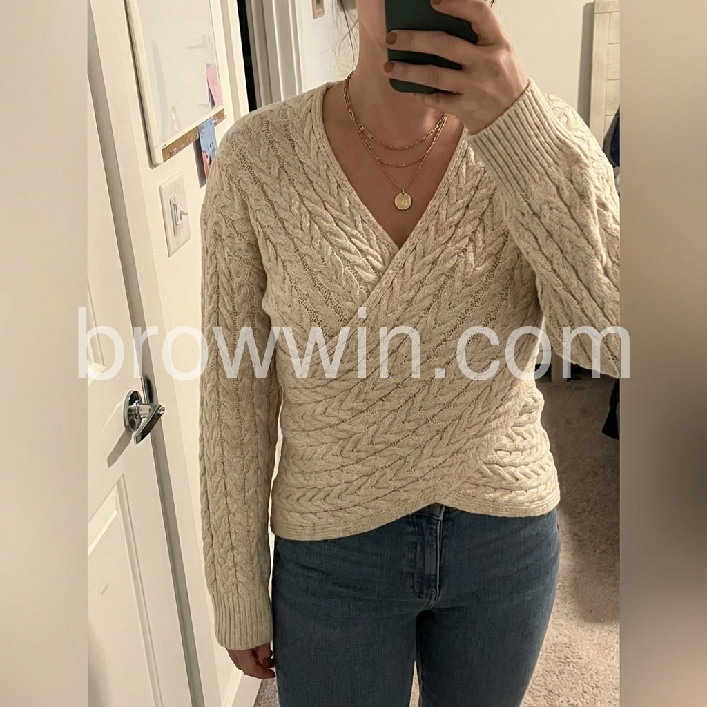 Yes!If you want a refund please contact our customer service at this email([email protected]).This apricot plain v-neck long sleeve sweater is a versatile addition to any wardrobe. Made with high-quality material, it offers both comfort and style. With its classic v-neck design and long sleeves, it can easily be dressed up or down for any occasion. Stay warm and elegant with this must-have piece.